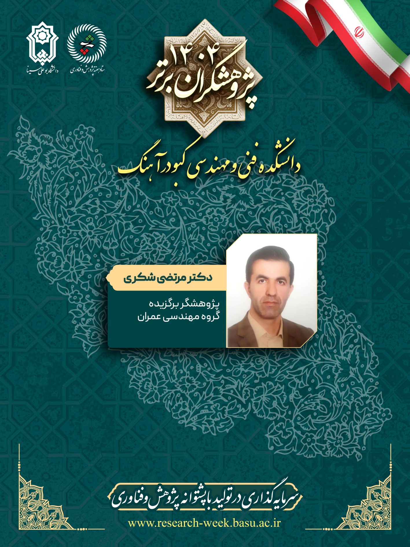 انتخاب پژوهشگران برتر دانشکدههای اقماری دانشگاه بوعلی سینا - هفته پژوهش